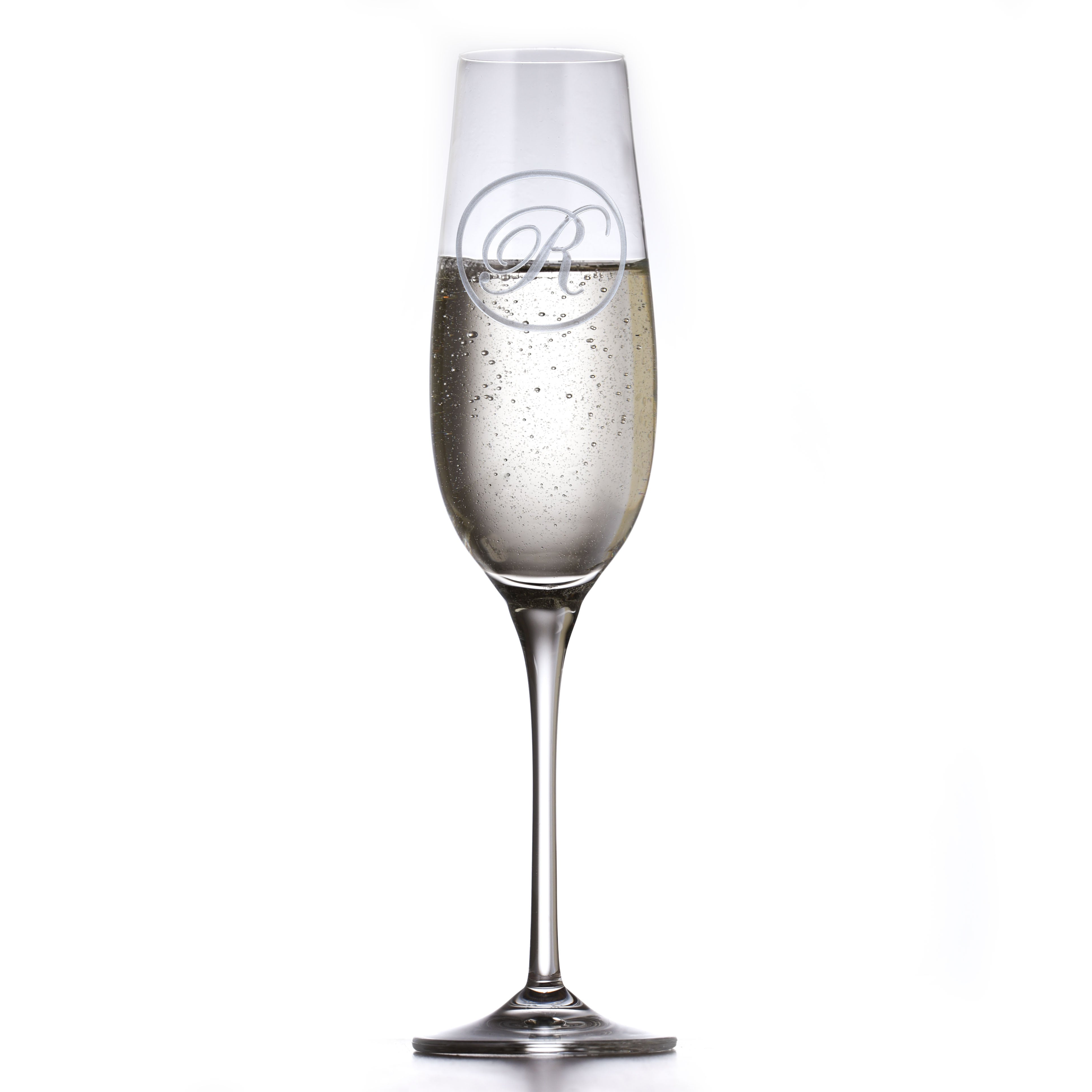The Etched Monogram Ravenscroft Crystal champagne glass is a cool and unique etched gift for him or her. Mimosa and Prosecco lovers will adore the deeply carved design creating a 3D surface on the toasting flute. Our unique carving method makes it a truly special gift for a wedding, birthday, anniversary and more. Featuring a pulled stem and sheer rim, this durable, lead-free crystal champagne toasting flute by Ravenscroft is dishwasher safe, however we recommend hand washing. Measures 9.5" high and holds 7 ounces of your favorite champagne, Prosecco, mimosas, and more.