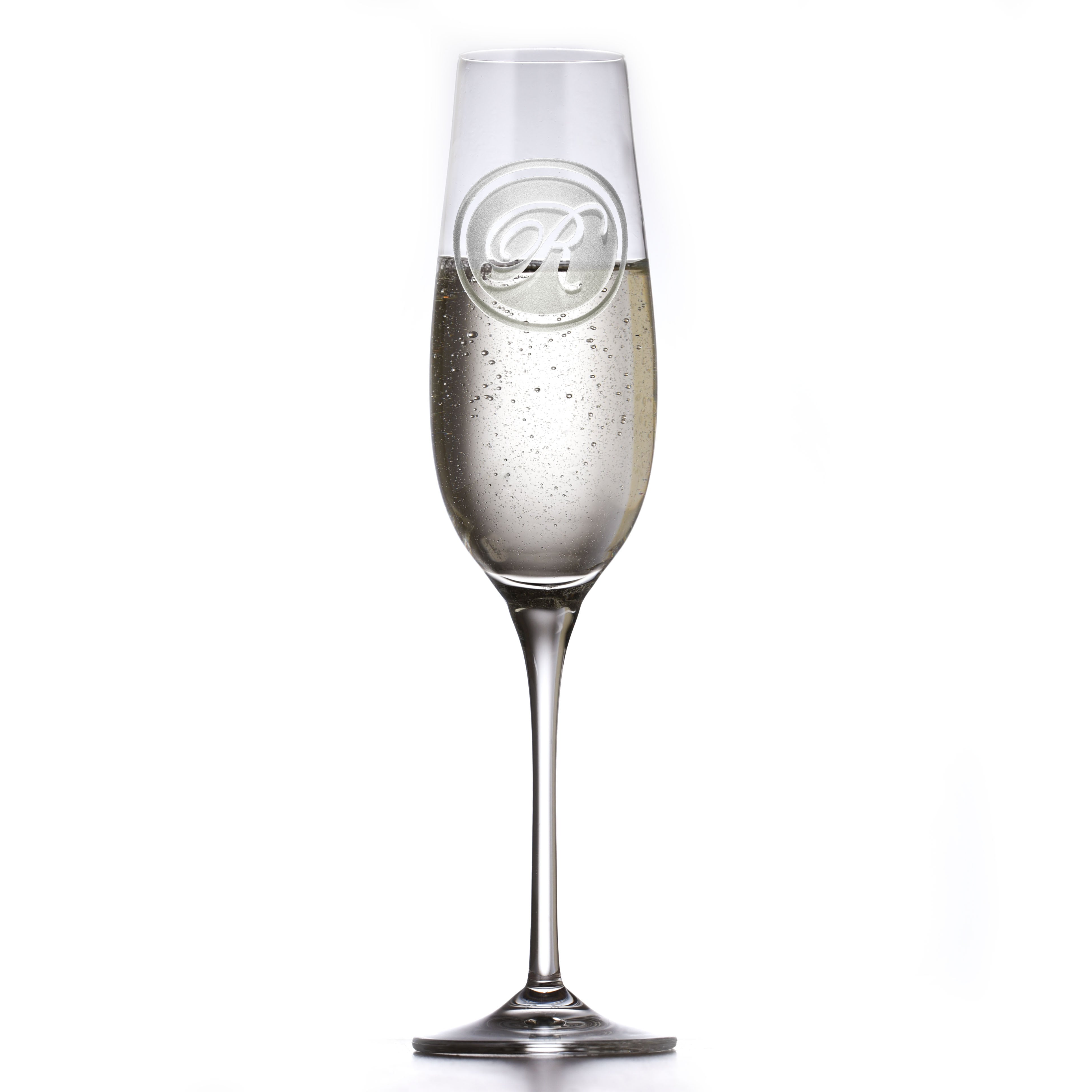 The Monogram Engraved Ravenscroft Crystal champagne glass is a cool and unique etched gift for him or her. Mimosa and Prosecco lovers will adore the deeply carved background leaving the monogram initial raised in a 3D manner from the toasting flute's surface. Our unique carving method makes it a truly special gift for a wedding, birthday, anniversary and more. Featuring a pulled stem and sheer rim, this durable, lead-free crystal champagne toasting flute by Ravenscroft is dishwasher safe, however we recommend hand washing. Measures 9.5" high and holds 7 ounces of your favorite champagne, Prosecco, mimosas, and more.