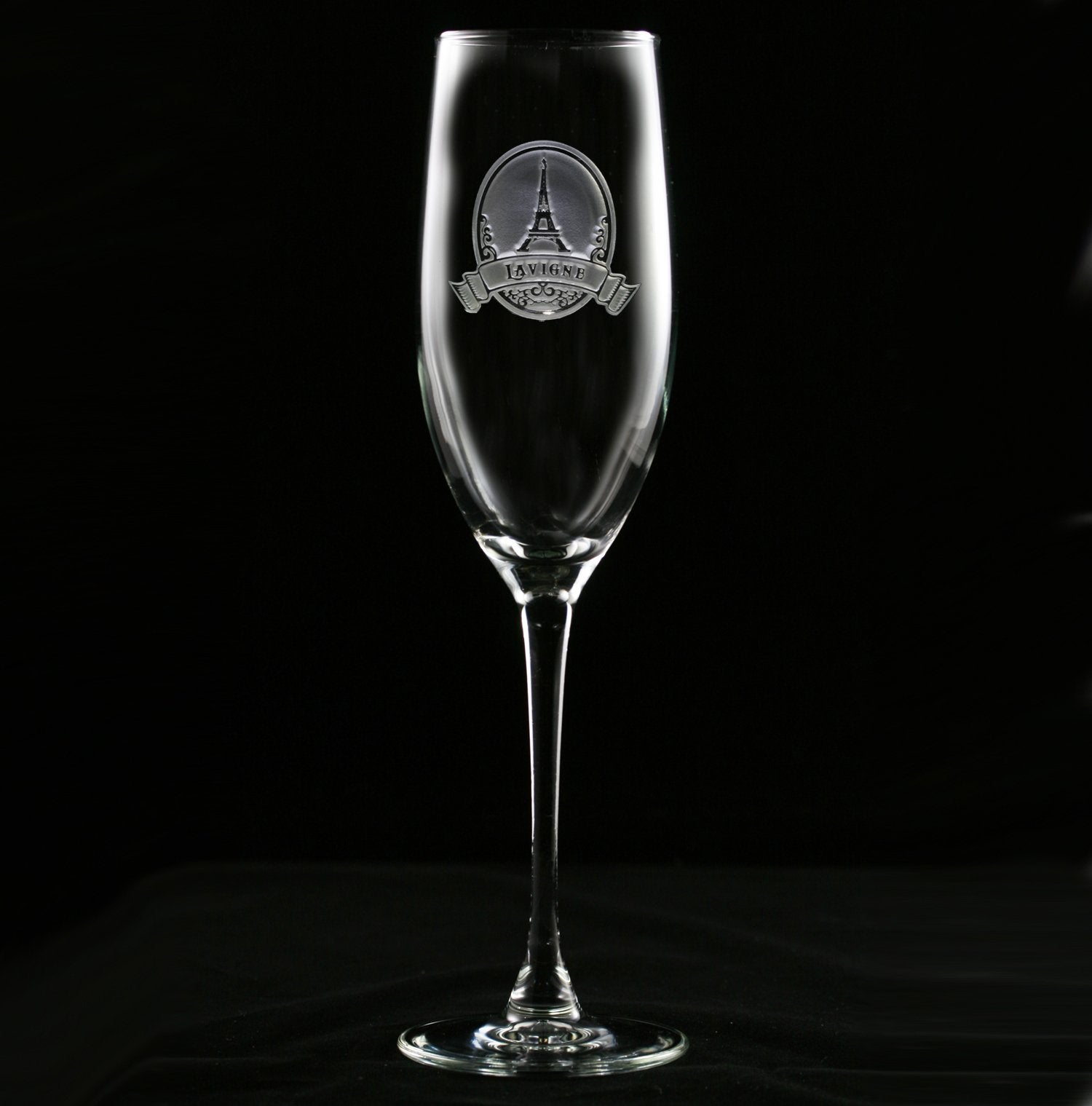 Nothing says romance like Paris, France and the Eiffel Tower. Our French inspired Eiffel Tower champagne glasses are the perfect romantic touch to any special occasion or celebration. The Eiffel Tower monogrammed champagne flute glasses would be a special wedding gift for a couple with French lineage or heritage as well. Do you know a francophile? Why not consider giving a set of our engraved personalized Eiffel Tower champagne flutes to your favorite francophile for a birthday, wedding, anniversary, Mother's Day, retirement, Valentine's Day, or any special occasion? These deeply carved toasting glasses are better than etched or engraved glasses. Our master carvers hand create each intricate design on your Eiffel Tower champagne glass for you with a method called sand-carving. We carve out the background around the design, leaving the lettering and details untouched and raised from the glass surface in a stunning and unique 3 dimensional manner. We assure you, these Parisian Eiffel Tower glasses will be the most memorable and appreciated gift for many years to come.