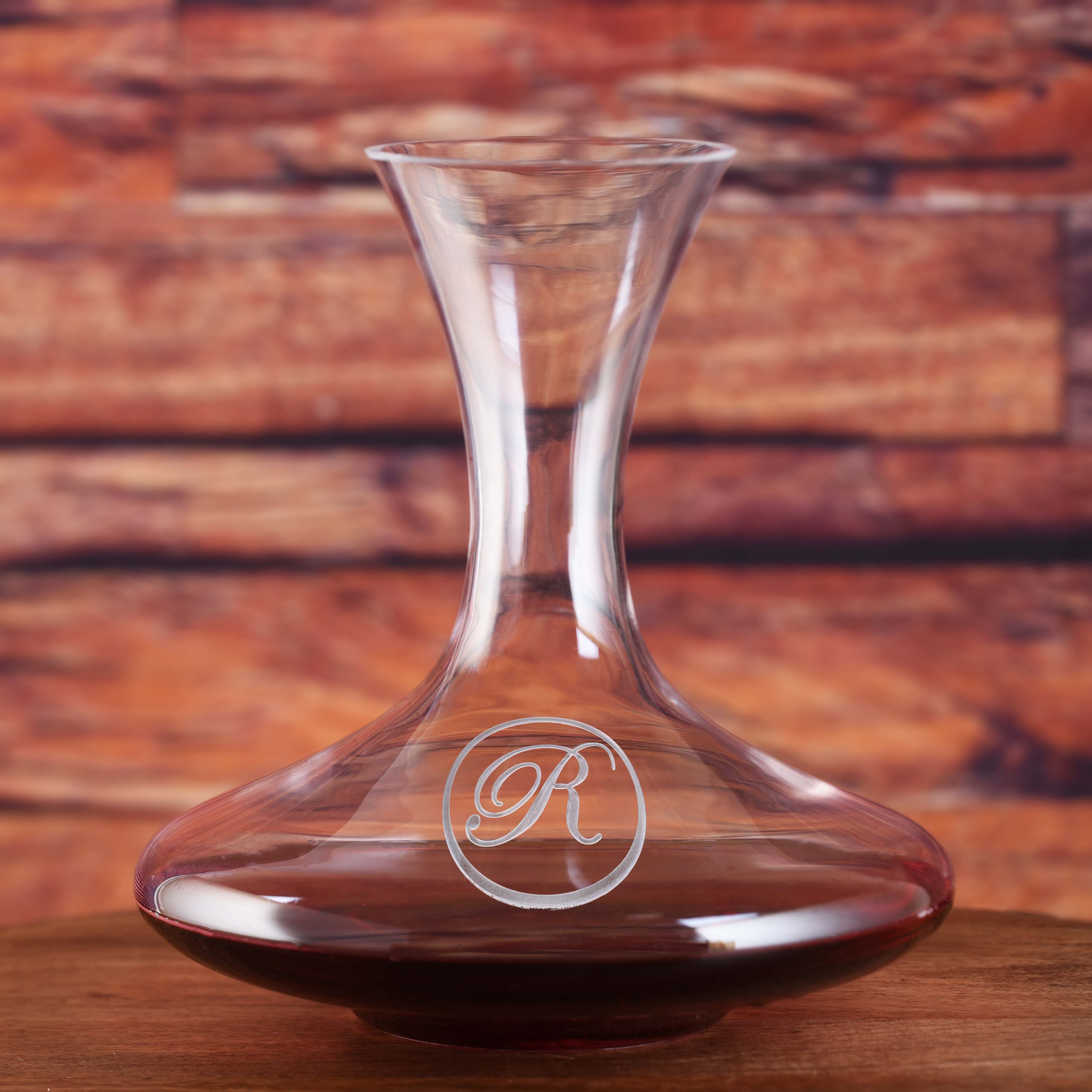 Featuring your monogram in a beautiful Edwardian Script font, our monogrammed wine decanter is a stunning display piece for your dining room, home bar, man cave, wine cellar or bar cart in any room of the home!