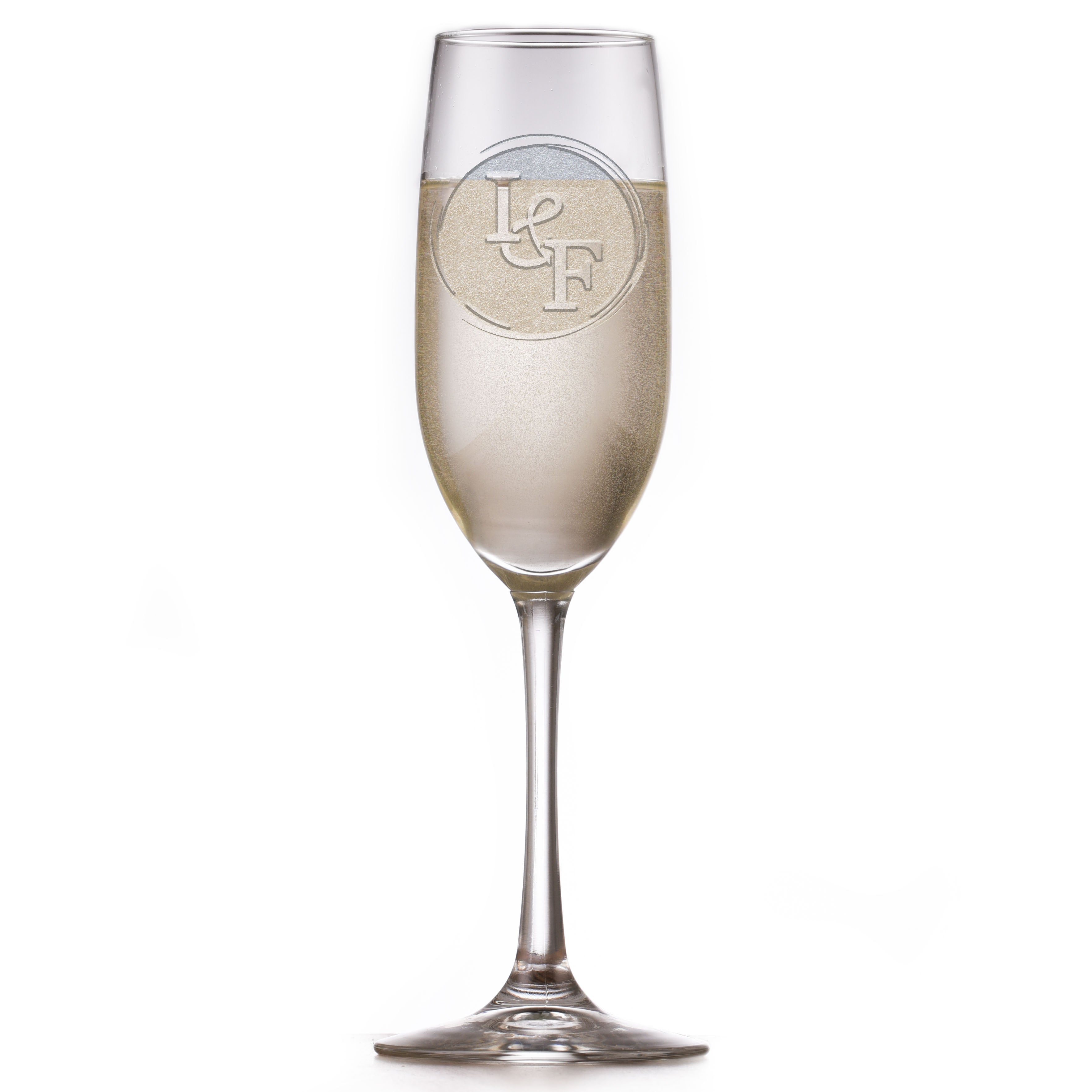 Etched wedding champagne flute with first initial monograms is a gorgeous personalized gift for the wedding anniversary couple, bride and groom or happy couple celebrating their love.Our custom engraved champagne flute with monogram is personalized with a carved out background and a stunning raised monogram initial in the center. Makes a great bridal shower gift to use for the bride and groom to make their wedding toast on their wedding day. Our master carvers hand craft each beautiful glass making this wedding gift a stunning keepsake.