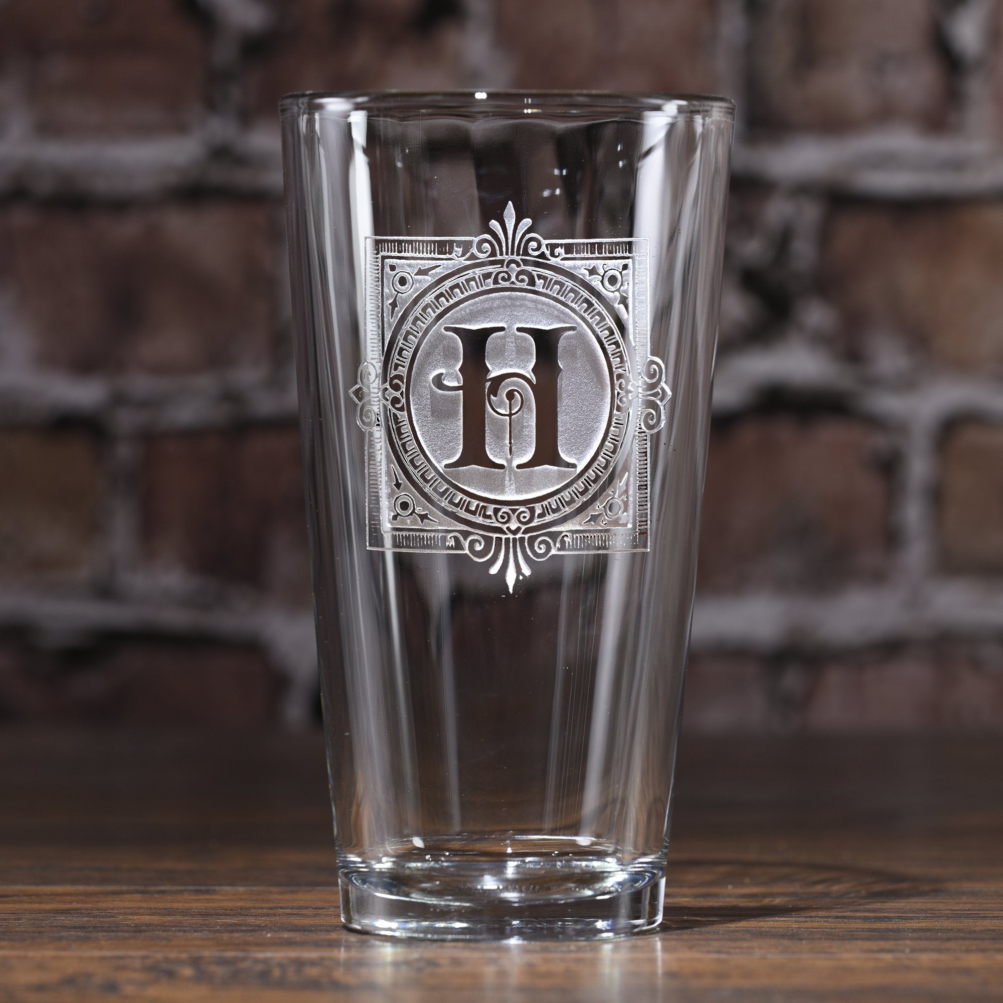 Monogrammed, engraved pub, pint, beer, water glasses are a great welcome to the neighborhood or hostess gift for a special couple. Deeply carved using our sand carving technique, each of our custom pint or pub glasses are meticulously custom made to order making them the perfect gift for those seeking unique gift ideas for beer lovers - men and women alike. At 5.75" high by 3.3" wide, our custom stemless beer glass holds 16 oz of your favorite beer in style. A custom engraved pint or pub glass will be the favorite gift at any special gift giving occasion. Personalized or monogrammed pint or pub glasses are a unique and special bridal shower gift, engagement gift, wedding gift or engagement gift. Also great gift idea for girlfriend or wife gifts, boyfriend or husband gifts, retirement gift or birthday for the classy man or woman who has everything. Dishwasher safe.