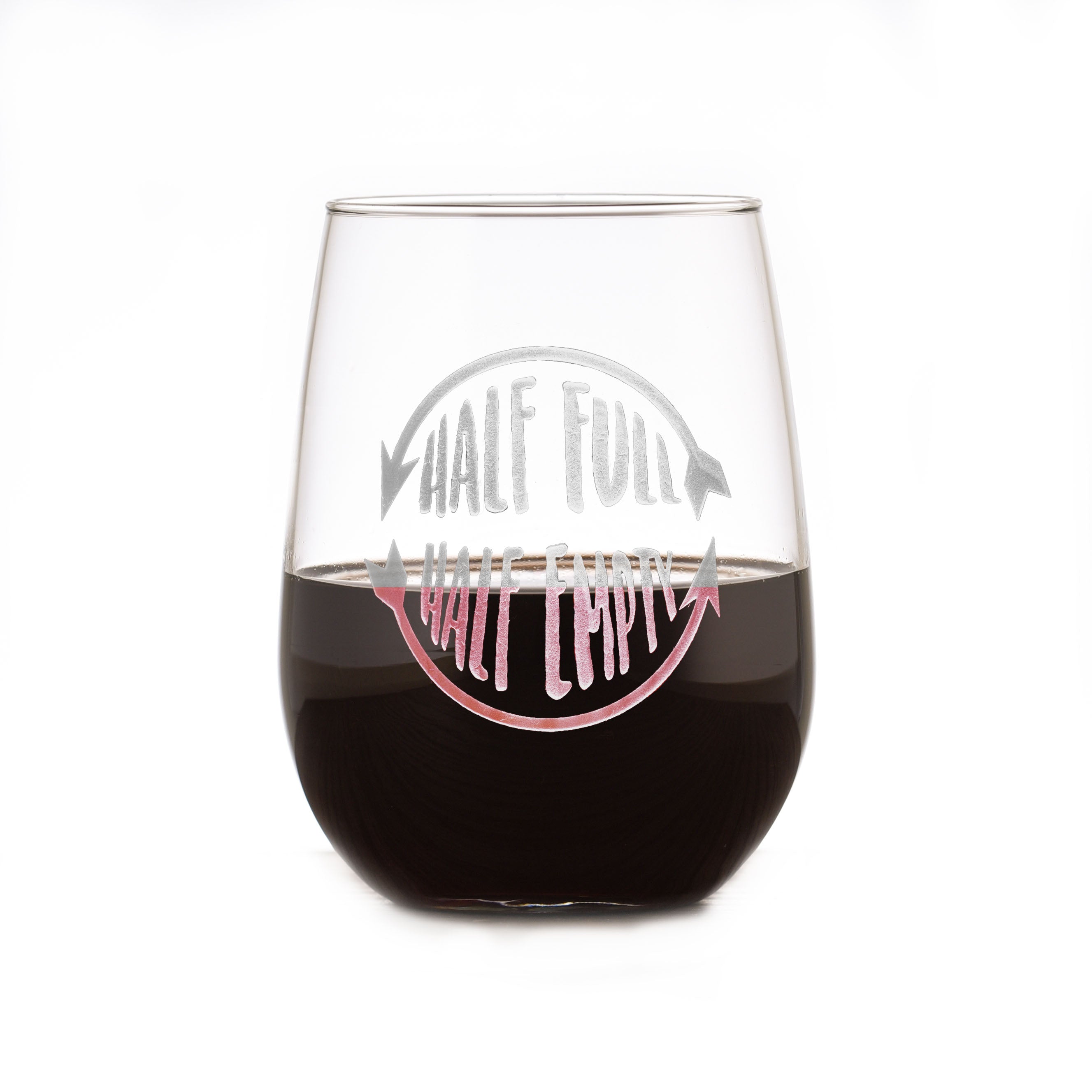 Is your stemless wine glass Half Full or Half Empty? Around here, we are Glass Half Full kind of people! Whether you're an eternal optimist or pessimist, you'll get a kick out of our humorous stemless wine glass gift.