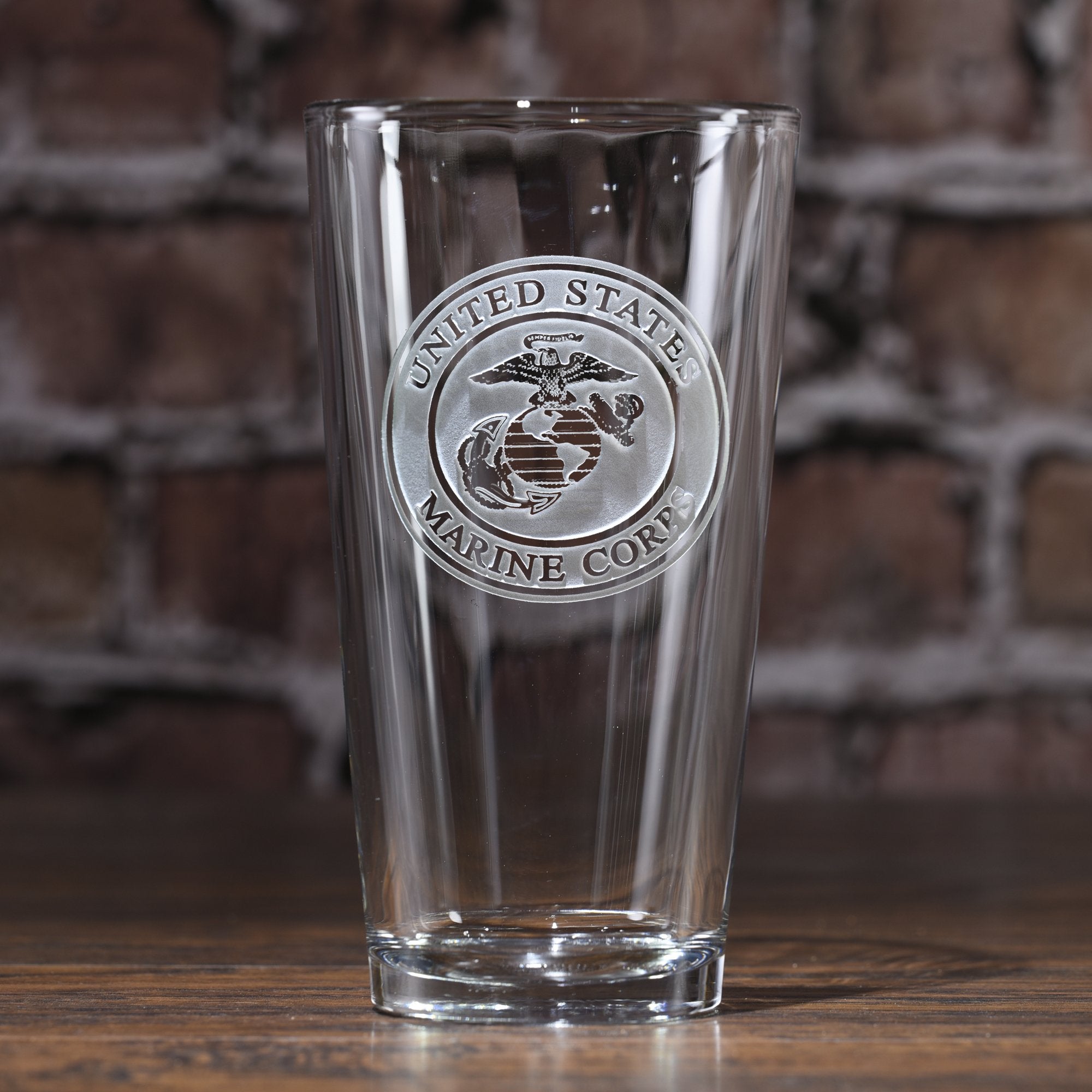 Engraved marines military pub glasses, pint beer glasses make a wonderful gift for marines. Deeply carved using our sand carving technique, each of our personalized pub pint glasses are meticulously custom made to order making them the perfect gift for those seeking unique gift ideas for beer lovers - men and women alike. At 16 oz, our pub glass will hold plenty of your favorite beverage. A custom engraved pint or pub glass will be the favorite gift at any special gift giving occasion. Personalized or monogrammed pint or pub glasses are a unique and special bridal shower gift, engagement gift, wedding gift or engagement gift. Also great gift idea for girlfriend or wife gifts, boyfriend or husband gifts, retirement gift or birthday for the classy man or woman who has everything. Measures 6 high by 3.5 wide. At 16 oz, our pub glass will hold plenty of your favorite beverage. Dishwasher safe. Marine Corps pint glass is made in the USA.