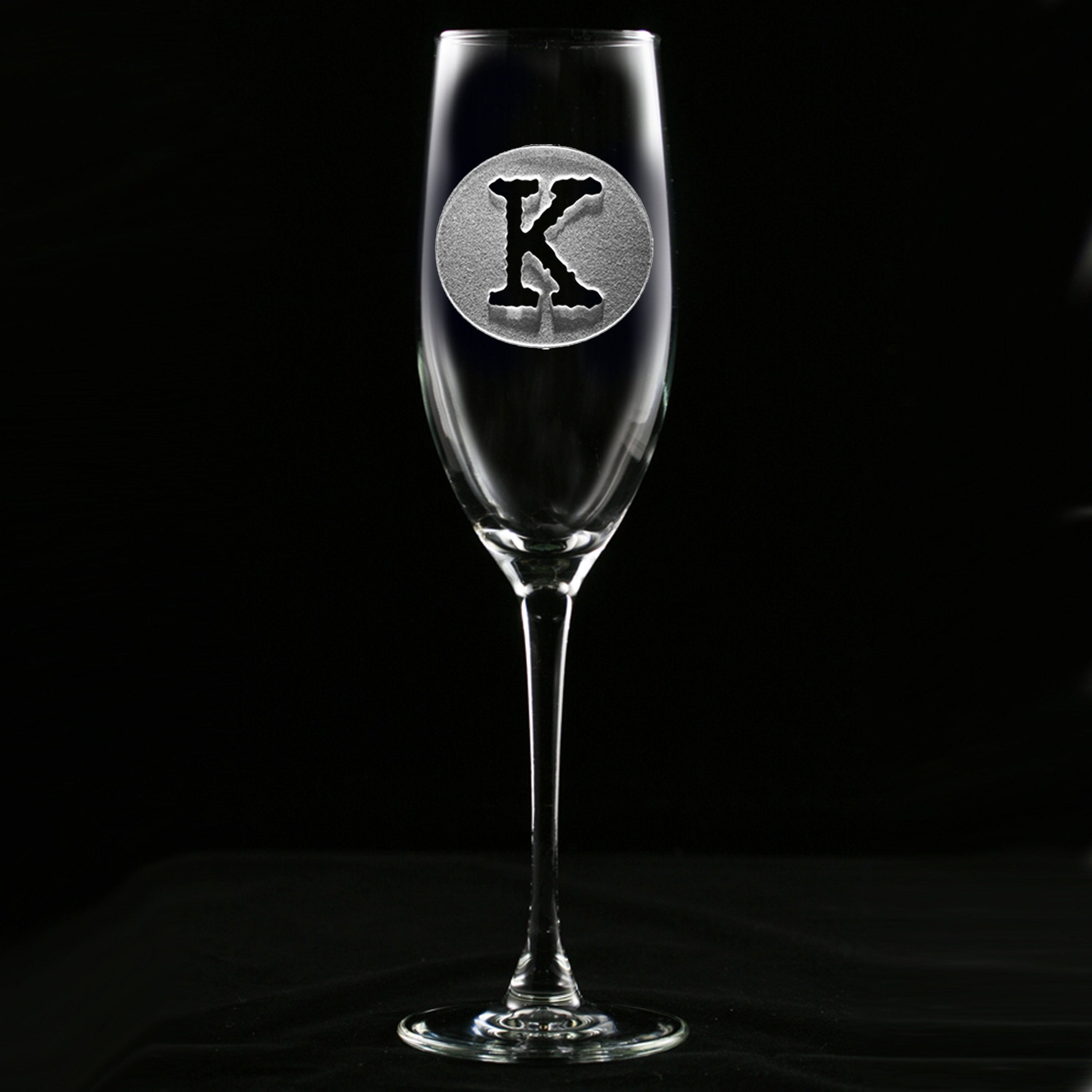 Initial Circle Engraved Champagne Toasting Flute, Custom Wedding Gifts