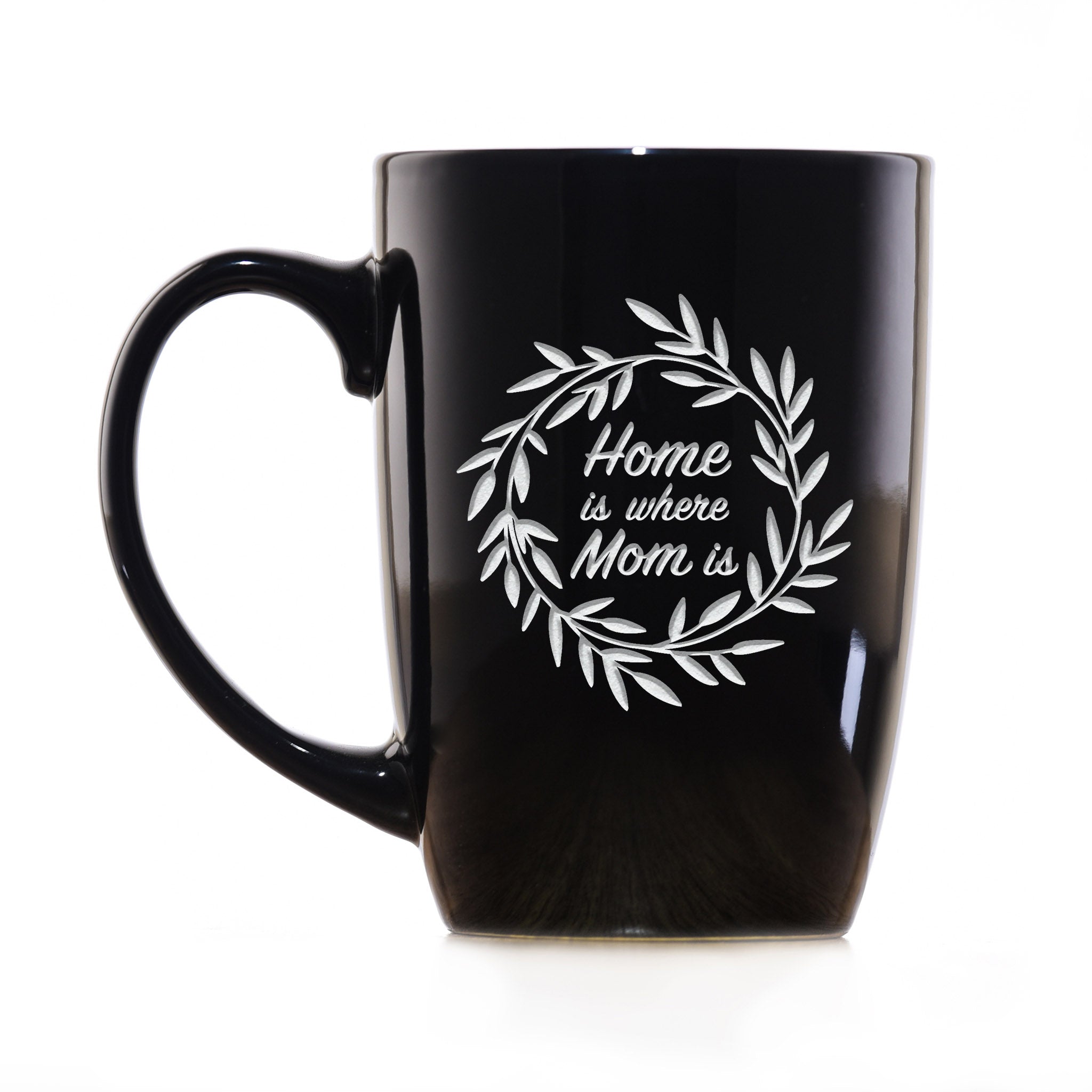 "Home is Where Mom is" mug. What better sentiment to share with your momma on Mother's Day? She has been there for you over the years, cared for you, cleaned your scratched knees, cheered you on during the big game, ensured you were fed and clothed and tucked you in sweetly with a kiss at bedtime. Mama has lovingly nurtured you all these years and provides a love for her child that will never diminish. Mom deserves some special recognition today and always. Our deeply carved designs provide a cool deep relief that can't be matched with basic laser etching and engraving. Mother's Day gift coffee mug is dishwasher safe.
