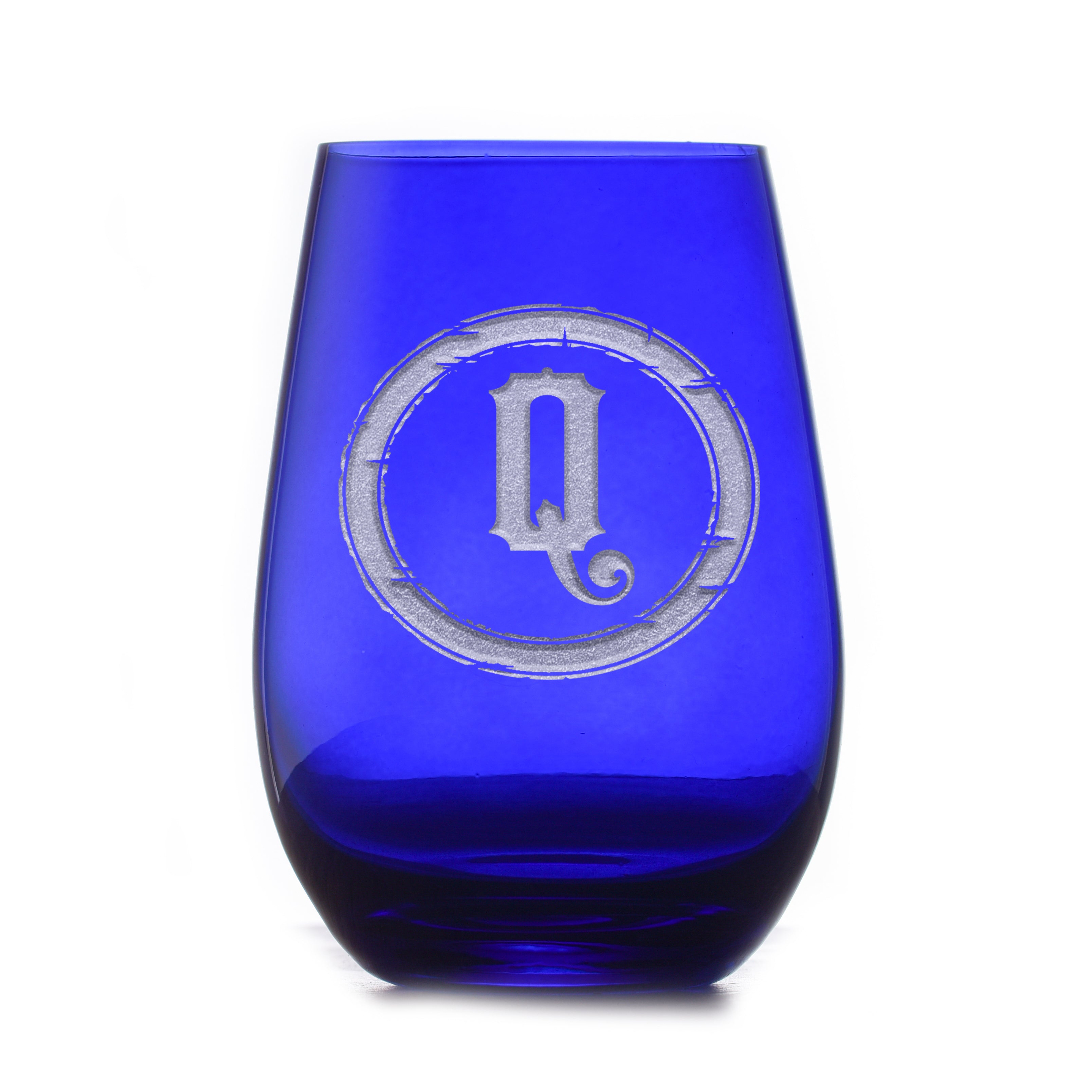 Rustic monogram blue stemless wine glass tumbler. This Stolzle Elements 16.5 oz. china blue tumbler, deeply etched and personalized by Crystal Imagery will be the gift you will love to give or get! Custom engrave your monogram or company logo while delivering the quality you've come to expect from Stolzle. Crystal Imagery prides ourselves with providing a deep-relief, 3D finish when we custom engrave your barware gifts. Our artisans use a sand-carving method that canÕt be matched by laser engravers and etchers. We blast away a background panel around the monogram or logo to create a finish that is jaw-dropping.This glassÕs organic color is what sets the Elements collection apart from traditional table settings. It's beautiful and natural at once, giving your table and party a splash of color for a bold new look. Use it to serve wine, cocktails, soft drinks, and water. The versatile size makes it a favorite for nearly every occasion.