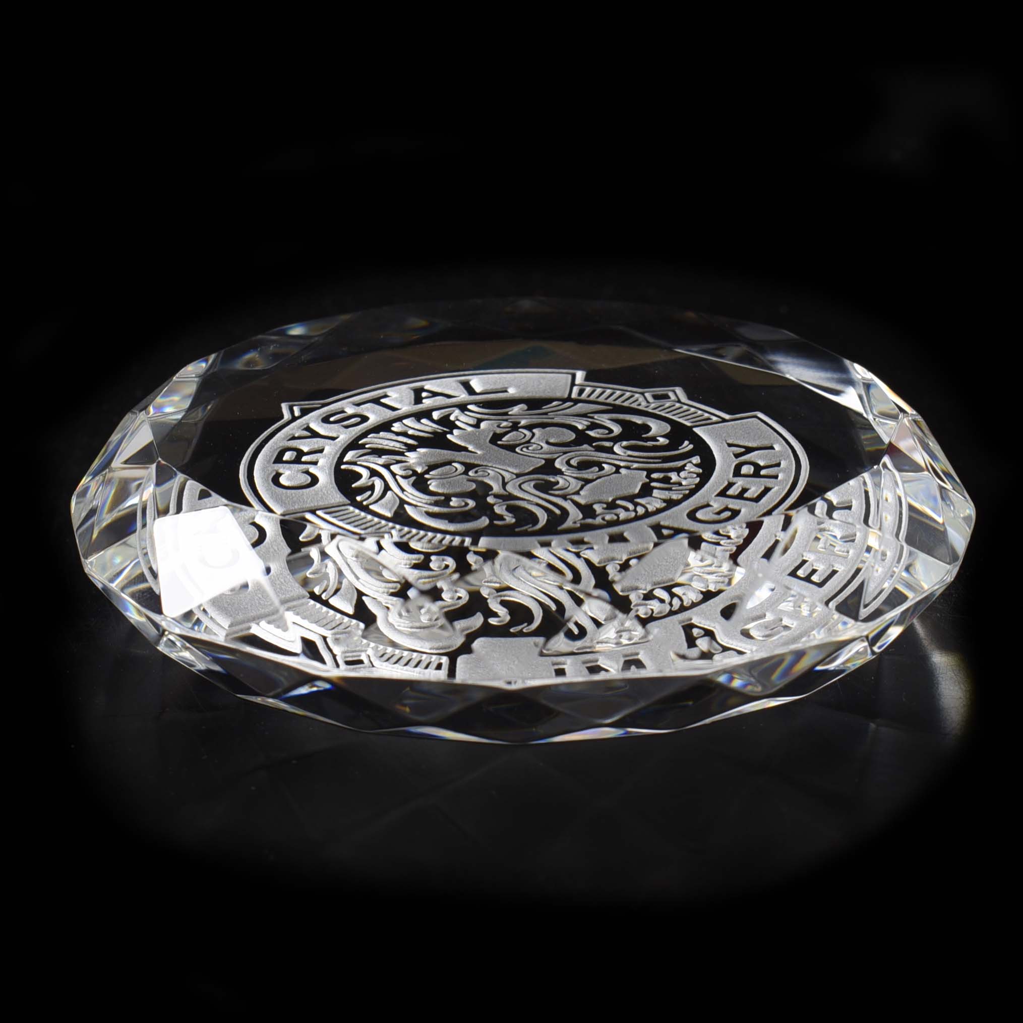 Our master carvers are true artisans who will hand-craft your paperweight by carving out the background of the crystal while leaving the central design of your logo untouched and raised from the crystal's surface in a jaw-dropping 3D embossed manner. A carved paper weight from Crystal Imagery will far surpass the quality of your typical surface scratching done by the engravers at the local mall.