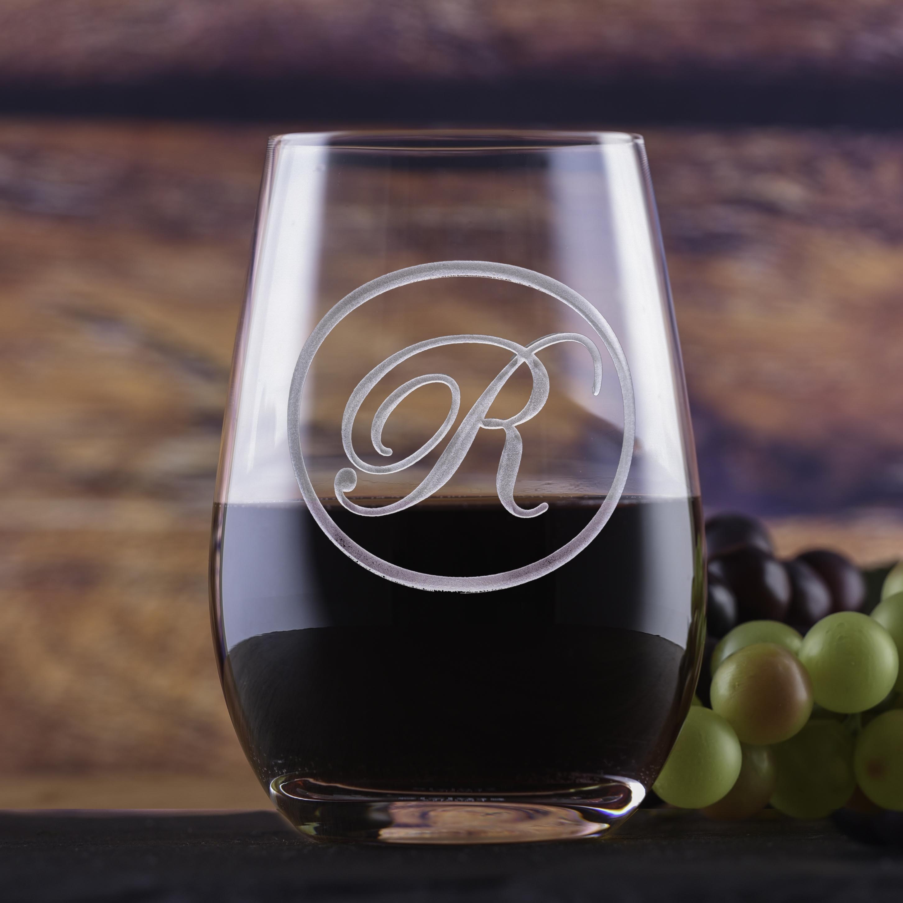 Monogram stemless wine glass tumbler. This Stolzle crystal 16.5 oz. stemless wine glass tumbler, deeply etched and personalized by Crystal Imagery will be the gift you will love to give or get! Custom engrave your monogram or company logo while delivering the quality you've come to expect from Stolzle. Crystal Imagery prides ourselves with providing a deep-relief, 3D finish when we custom engrave your barware gifts. Our artisans use a sand-carving method that can't be matched by laser engravers and etchers. We blast away a background panel around the monogram or logo to create a finish that is jaw-dropping. It's beautiful and natural at once, giving your table and party a classic elegance. Use it to serve wine, cocktails, soft drinks, and water. The versatile size makes it a favorite for nearly every occasion. Made of 100% lead free crystal, this Stolzle stemless wine tumbler provides higher clarity and brilliance than glassware that contains lead. The smooth touch and delicate chime of the glass lets your guests know they are receiving the very best product for enjoying special occasions. Plus, since it undergoes a fire tempering process during production to increase hardness and durability, it's guaranteed to last.