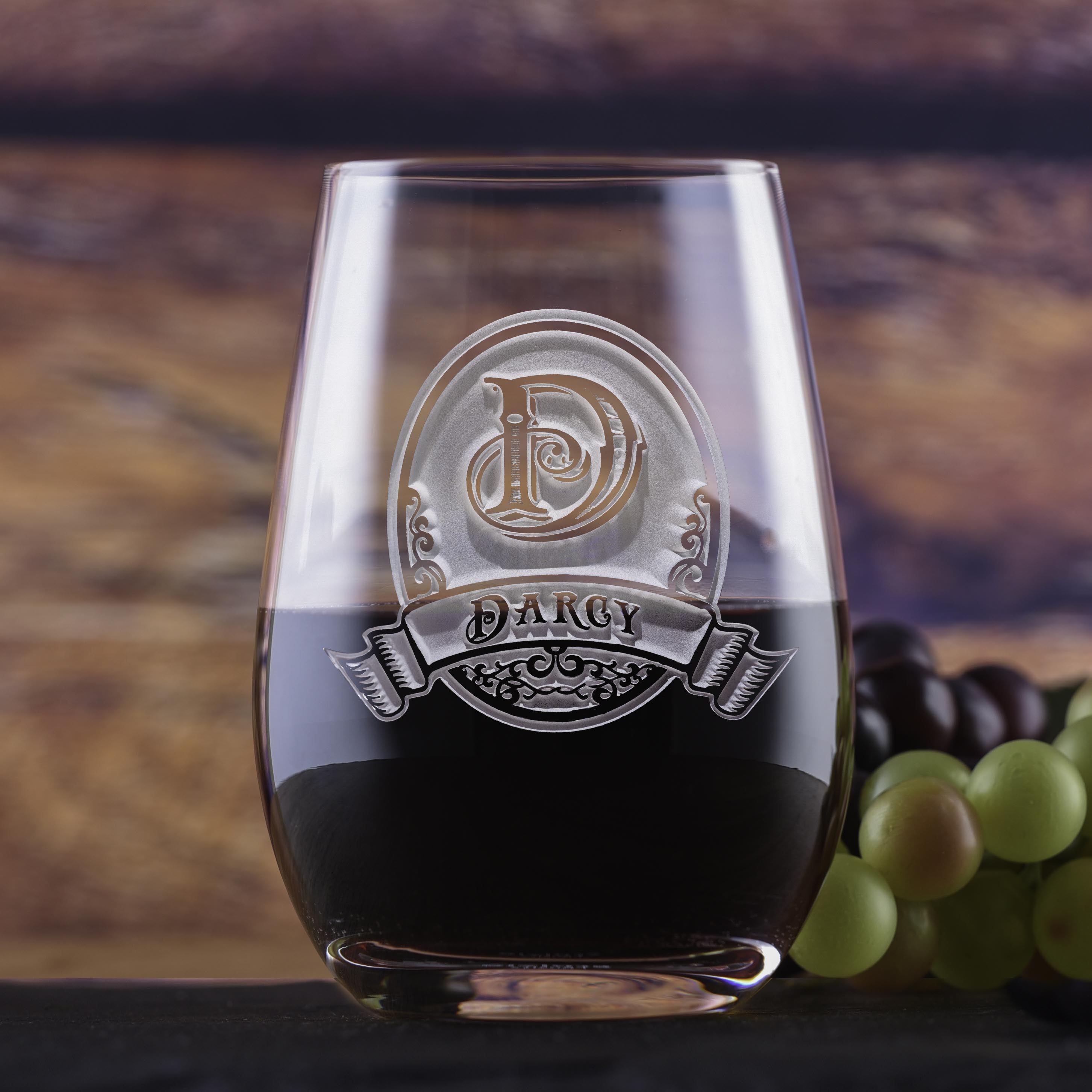 Personalized stemless wine glass tumbler. This Stolzle crystal 16.5 oz. stemless wine glass tumbler, deeply etched and personalized by Crystal Imagery will be the gift you will love to give or get! Custom engrave your monogram or company logo while delivering the quality you've come to expect from Stolzle. Crystal Imagery prides ourselves with providing a deep-relief, 3D finish when we custom engrave your barware gifts. Our artisans use a sand-carving method that canÕt be matched by laser engravers and etchers. We blast away a background panel around the monogram or logo to create a finish that is jaw-dropping. It's beautiful and natural at once, giving your table and party a classic elegance. Use it to serve wine, cocktails, soft drinks, and water. The versatile size makes it a favorite for nearly every occasion. Made of 100% lead free crystal, this Stolzle stemless wine tumbler provides higher clarity and brilliance than glassware that contains lead. The smooth touch and delicate chime of the glass lets your guests know they are receiving the very best product for enjoying special occasions. Plus, since it undergoes a fire tempering process during production to increase hardness and durability, it's guaranteed to last.