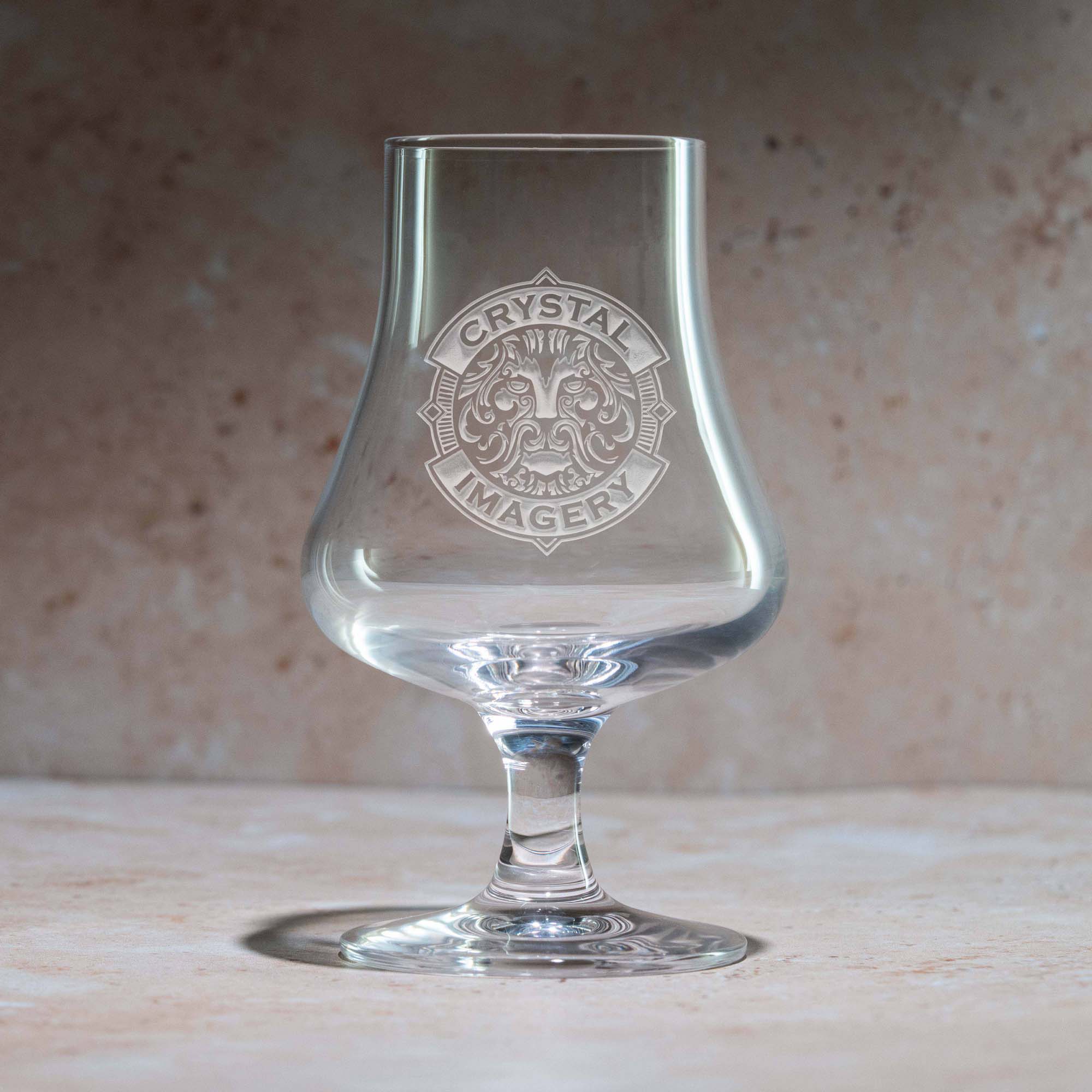 Add your logo to this elegant crystal whiskey nosing and tasting glass. The whisky tasting glass used at brand name distilleries around the world and is great for whiskey, brandy, tequila and more.